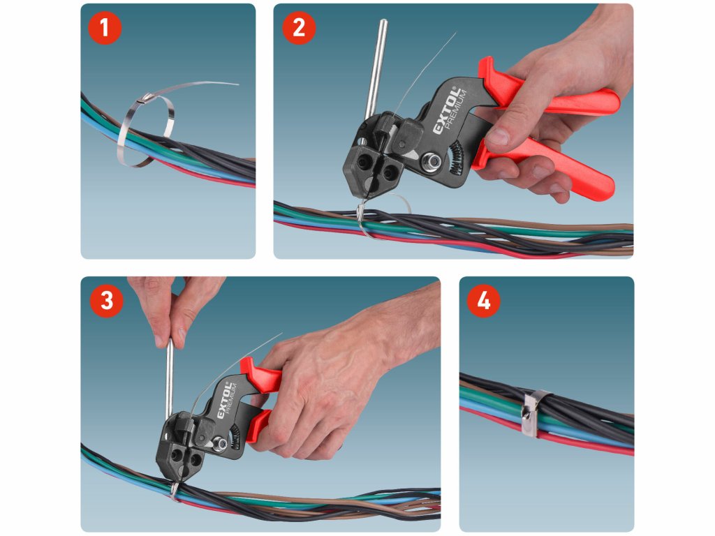 - pomocou klieští je možné dosiahnuť väčšiu kontrolu a vyvinúť väčšiu silu a lepšie dotiahnutie nerezových sťahovacích pások