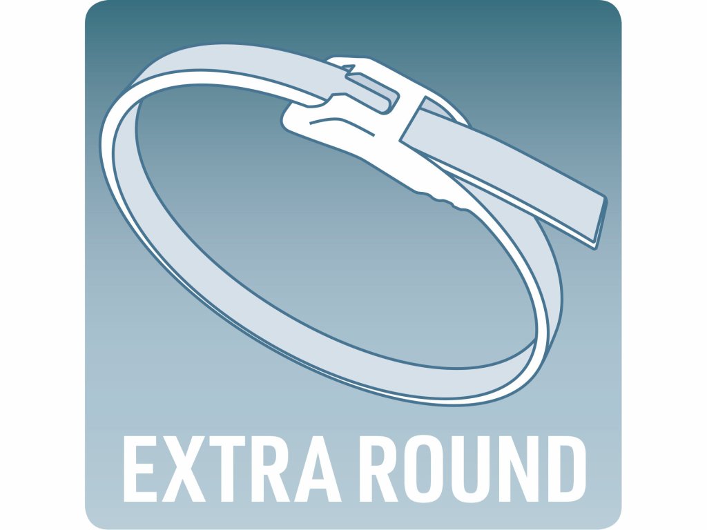 - Dank der Konstruktion und Form des Verschlusses bildet das Band in der Schlaufe einen nahezu exakten Kreis und reißt nach dem Festziehen nicht. Dadurch ist das Band unter anspruchsvolleren Bedingungen, insbesondere bei Frost, haltbarer als Bänder mit herkömmlichem Verschluss.