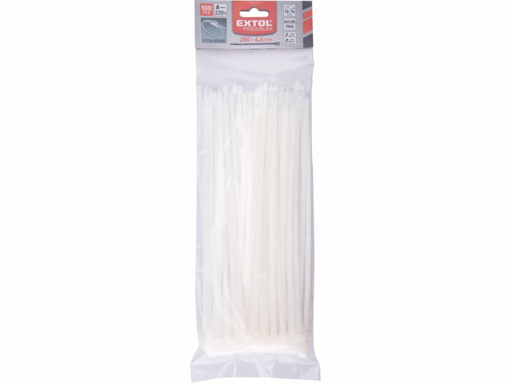 - 100 Stück, 4,6 x 280 mm, Zugfestigkeit 22 kg, Schlaufendurchmesser 10–76 mm, Nylon PA66