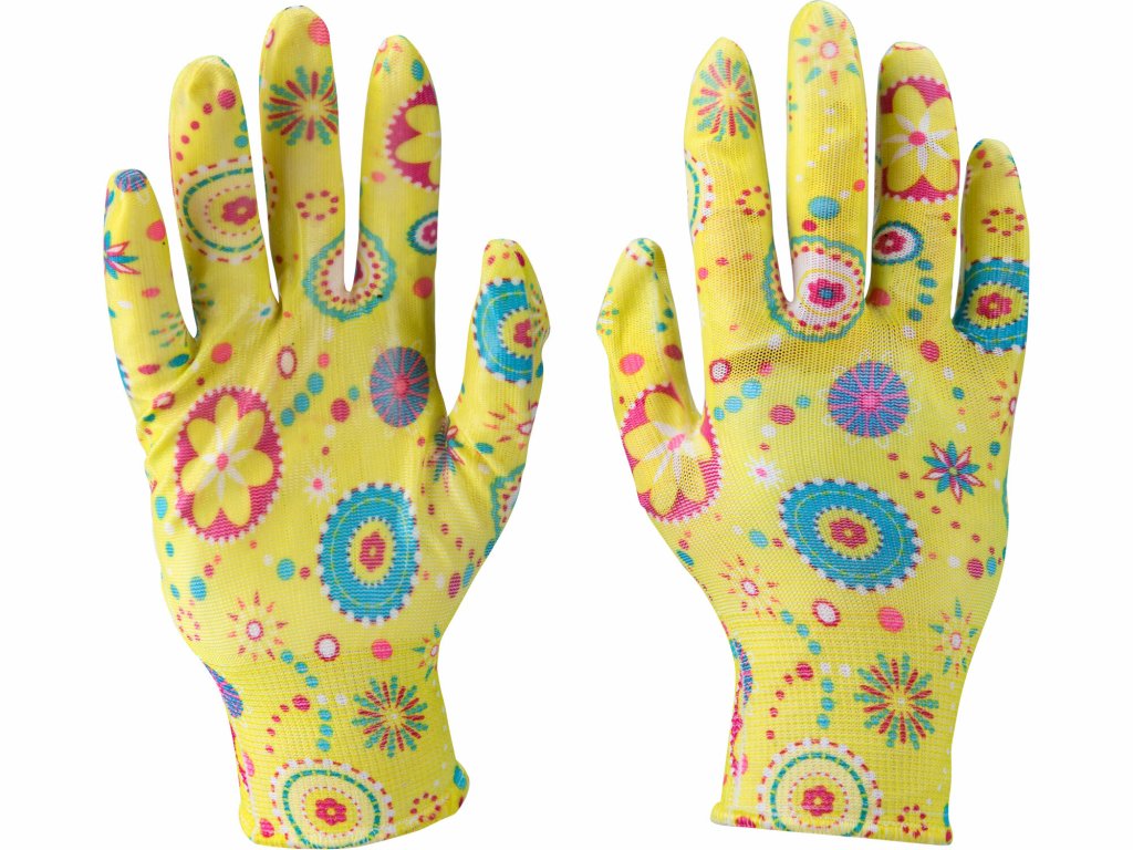 - Eine Nitrilschicht an Handflächen und Fingern erhöht die Haltbarkeit der Handschuhe.