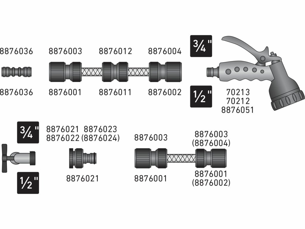- In Größen für 1/2"- und 3/4"-Schläuche