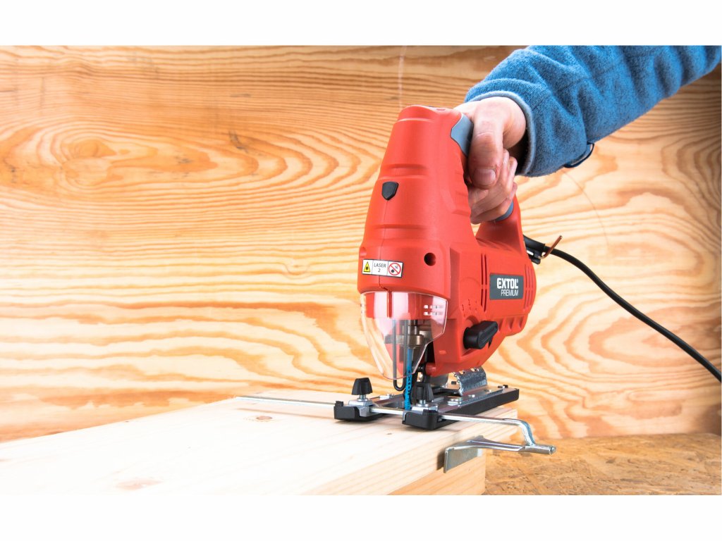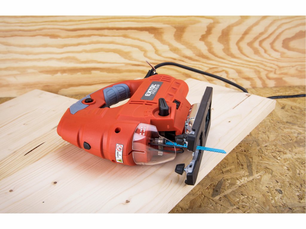 Die Stichsäge ist für Trenn- und Formschnitte konzipiert, hauptsächlich in Holz und Spanplatten, aber auch in Metall, Kunststoff, Gummi und Keramik. Hierfür werden die dafür vorgesehenen Sägeblätter verwendet. Die Säge ist mit einer Motordrehzahlregelung und einer Voroszillationskraftregelung ausgestattet, mit denen Sie den Sägevorgang an verschiedene Materialien anpassen können. Standardmäßig bläst die Säge beim Schneiden die Späne vom Arbeitsbereich weg. Durch Anschluss eines Staubsaugers lässt sich diese Funktion deaktivieren, sodass die Späne direkt abgesaugt werden – für einen deutlich saubereren Arbeitsplatz. Für präzises Arbeiten verfügt die Säge über einen Laser zur exakten Schnittlinienführung und eine LED-Leuchte zur Ausleuchtung des Arbeitsbereichs. Je nach Situation können Sie die Funktionen gleichzeitig oder einzeln einschalten.- Elektronische Drehzahlregelung