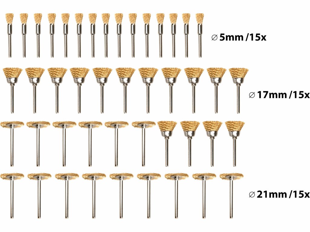 903761 | Rundbürsten Set mit Schaft 45 Stk, Stahldraht vermessingt