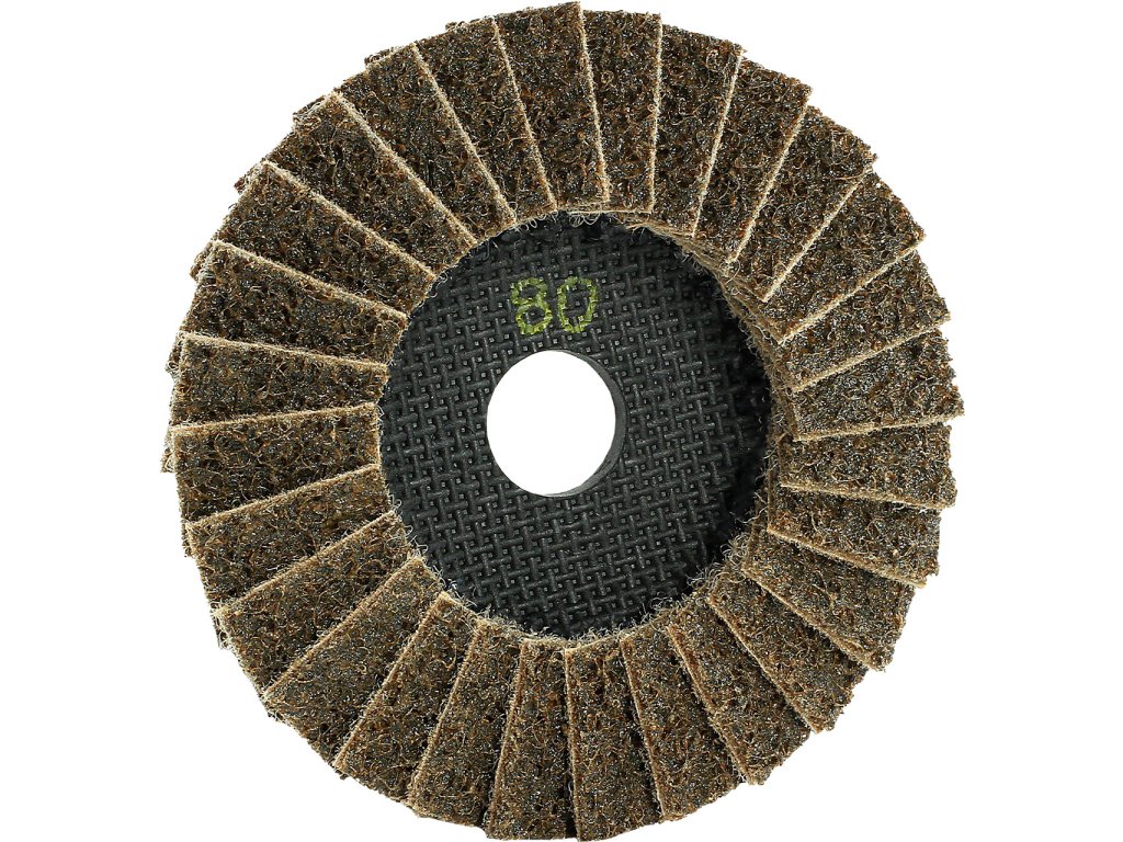 - Hochelastische, federnde Vlies-Fächerscheibe mit geringer Bauhöhe.