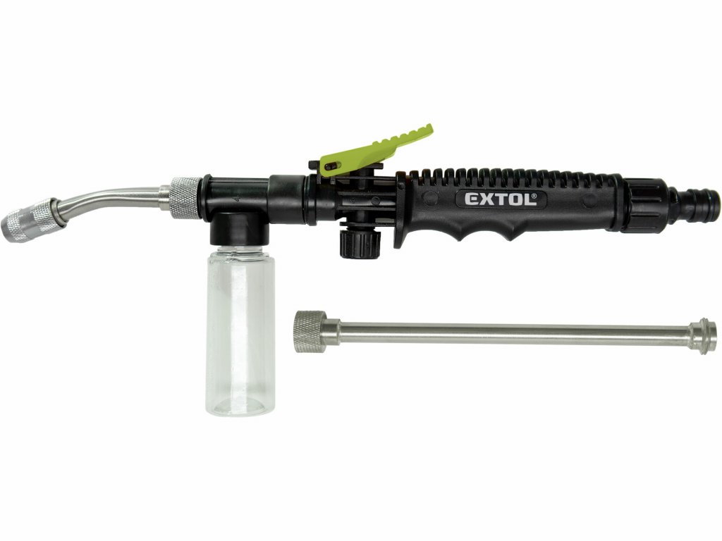 - Die Sprühdüse aus Metall ist 9 cm lang und kann mit einem Adapter um weitere 20 cm auf bis zu 29 cm verlängert werden.